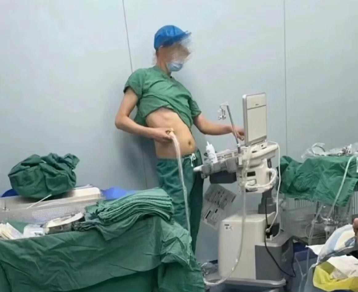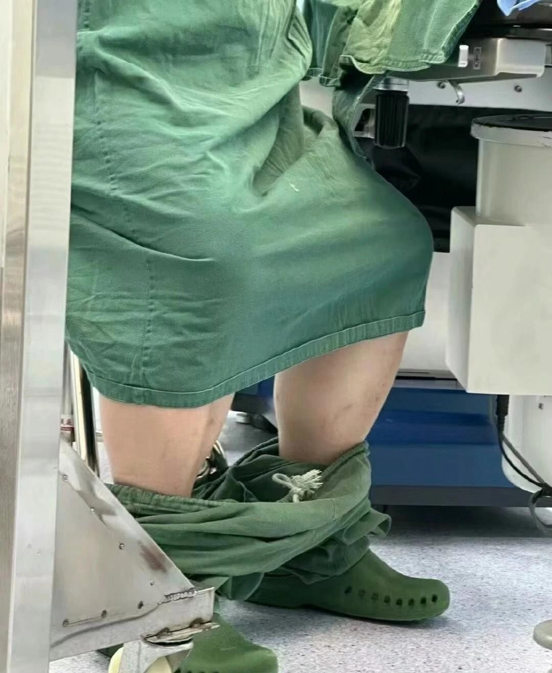 23.手术中的医生,裤子突然掉了。