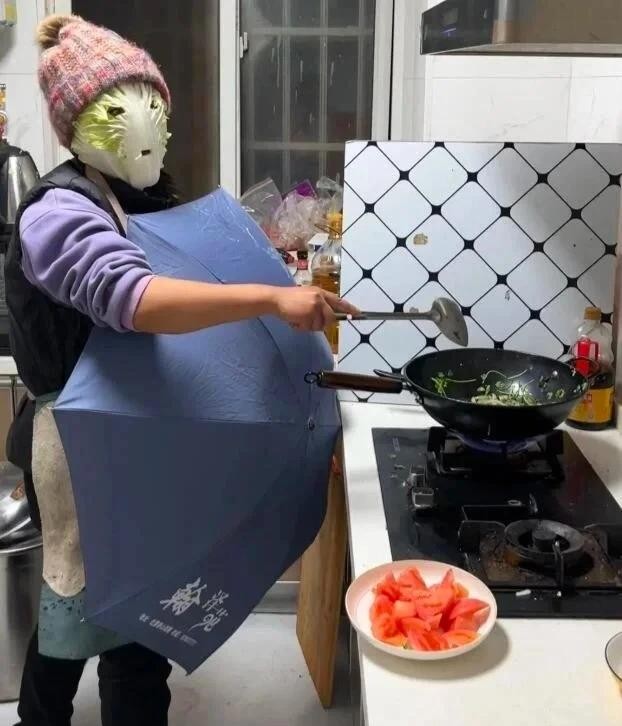 24.全副武装,这样就不会被油爆到了。