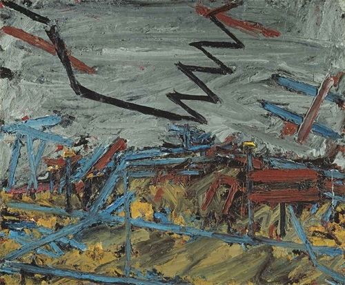 奥尔巴赫刚出道时,他那些以樱草花山和伦敦工地为题材的画作就受到好评,被视作“现存最厚重的油画”,“颜料堆叠在画布上,望去犹如巨型浮雕。”