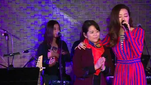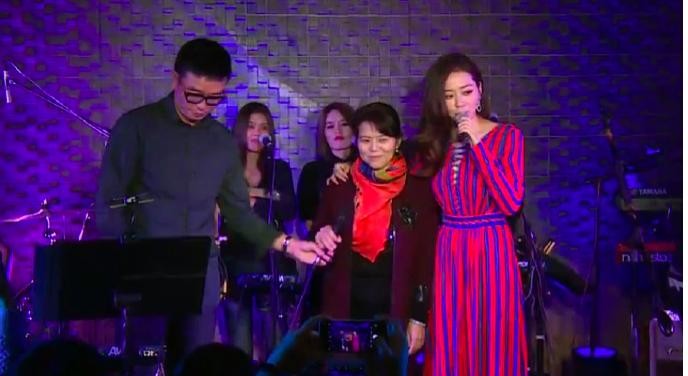 生日会上,张靓颖母亲张桂英现身,与女儿靓颖深情相拥,张靓颖还搂着妈妈唱了一首歌。而准女婿冯轲还手捧花束,献给了丈母娘也献给了靓颖。