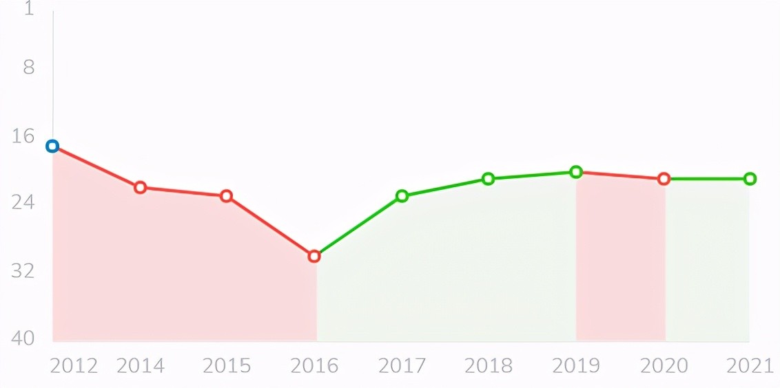 在2021年QS全球世界大学排名中排名第21。最近十年,密歇根大学最高排名16,最差排名30。最近五年基本上排名在21左右。