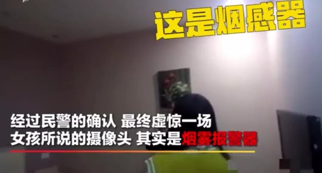 民警在接到报警电话后立即赶往事发现场,随后女孩将民警带到宾馆,指着天花板上的红色灯光,称有可能是针孔摄像头。经民警确认,最终虚惊一场,女孩说的摄像头,其实是烟雾报警器。