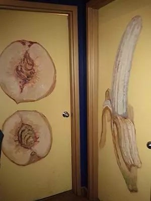 第三点便是从它所想表达的含义了,例如下面这个香蕉和桃子,如果单从图形上比较难判断出男女。但是从其所表达的含义,就能够分辨出香蕉表达的是男厕所,而桃子则表达的是女厕所,可见分辨厕所其实并不困难。