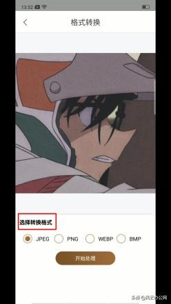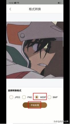 比如选择将图片转换为WEBP格式,选中转换的格式后,点击开始处理即可。当然要是选择转换为其他图片格式的方法也是一样的,只不过选择的图片格式不一样而已。