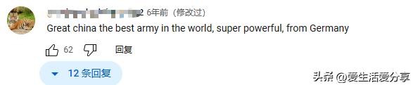 来自一位德国的一位网友看完视频这样评价:伟大的中国世界上最好的军队,超级强大,来自德国