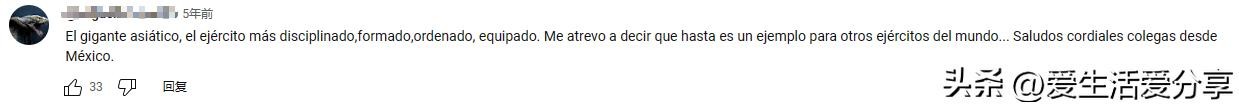 来自一位墨西哥的网友看完视频这样评价:亚洲巨人,纪律最严、训练有素、秩序最严、装备最齐全的军队。 我敢说,这甚至是世界其他军队的榜样……最诚挚的问候,来自墨西哥的同事。
