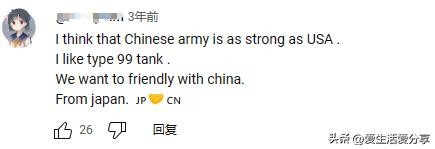 来自一位日本的网友看完视频这样评价:我认为中国军队和美国一样强大。 我喜欢99式坦克。 我们想与中国友好。 来自日本。