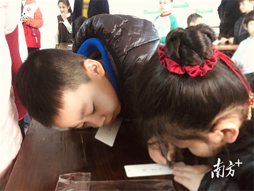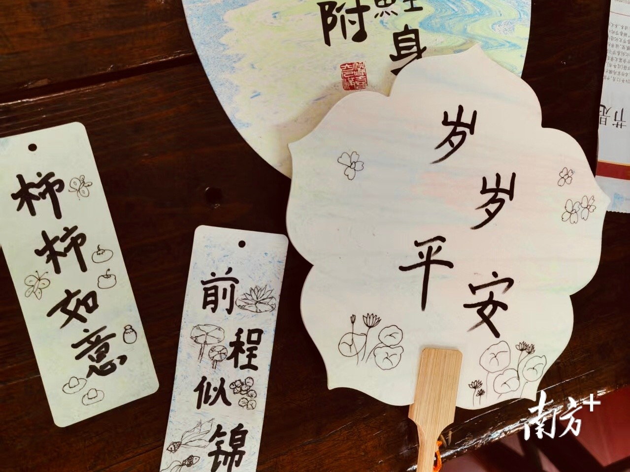 最后,小朋友们在工作人员和志愿者的帮助下,亲手制作了属于自己的漆扇,并写上祝福语句,展望未来事事如意。