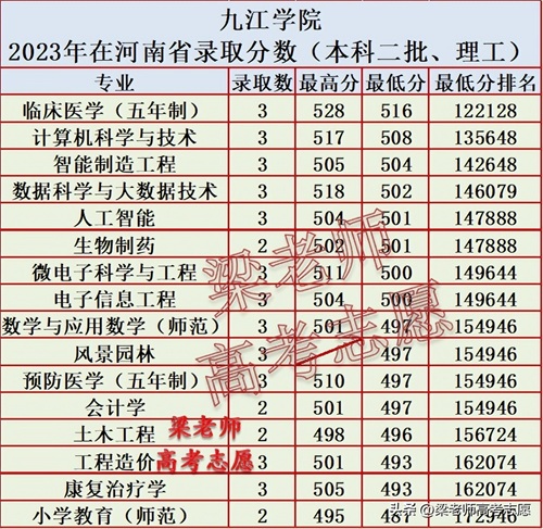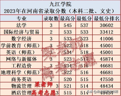 九江学院2023年分省分专业录取分数及2024年报考指南