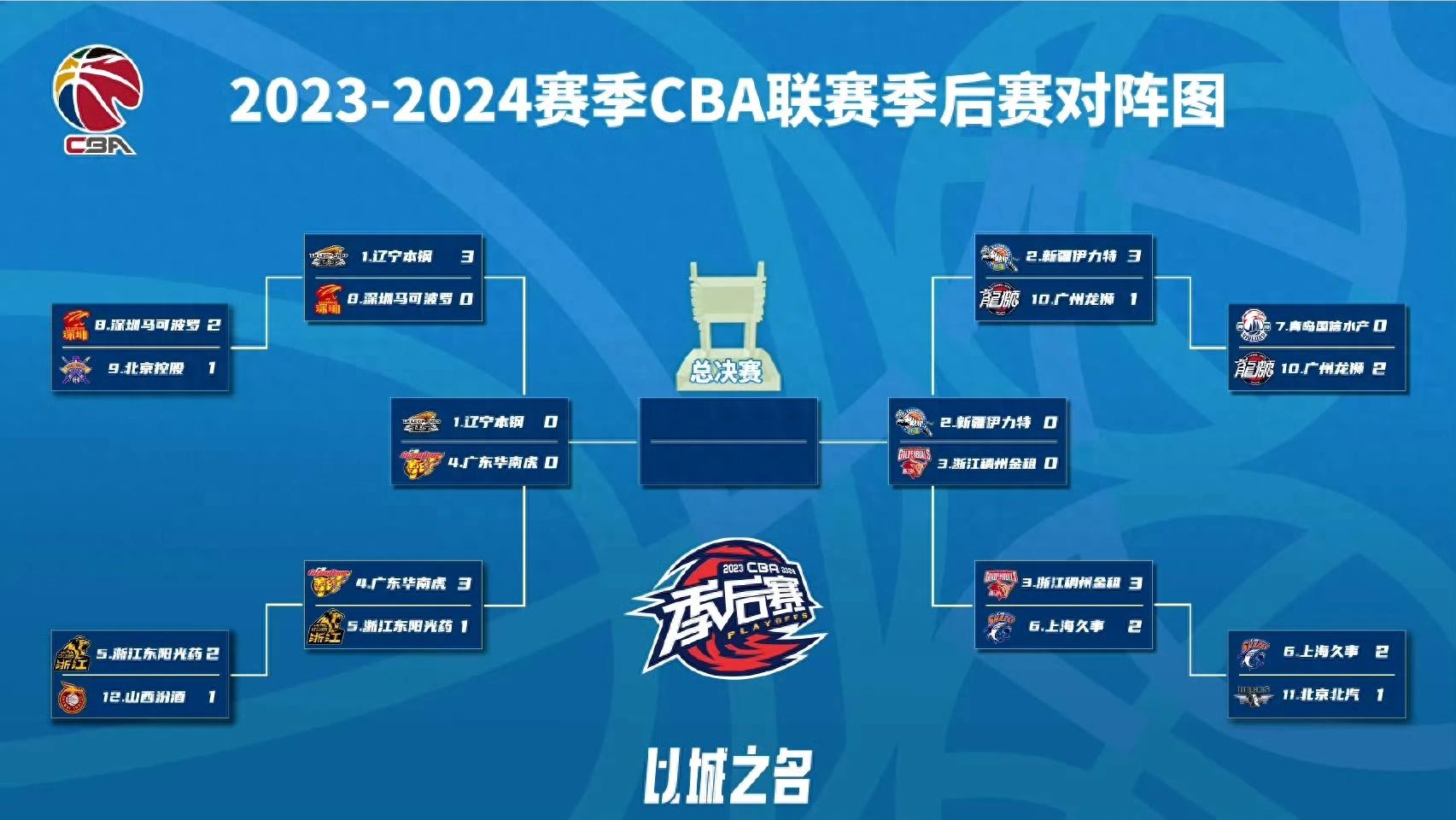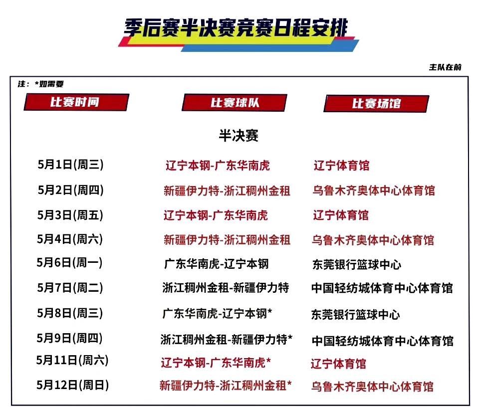 CBA季后赛半决赛对阵及日程安排,【辽粤大战】,【疆浙大战】!