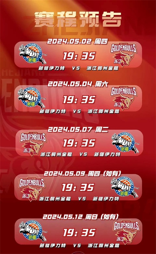 下半区第四场:5月9日——浙江(主场)vs新疆(客场)——(如需要)