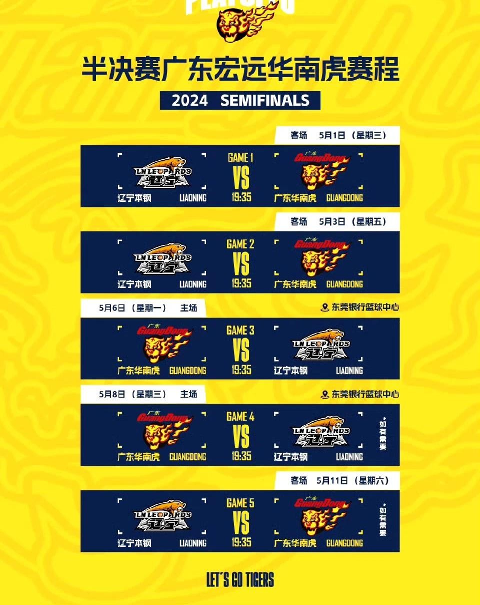 上半区第五场:5月11日——辽宁(主场)vs广东(客场)——(如需要)