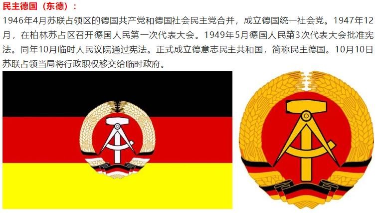 1949年1月,苏联开始考虑解除对西柏林的封锁。5月5日,美、苏、英、法四国达成协议,取消互相封锁,历时一年多的柏林危机结束了。西德已在建国了,苏联觉得再坚持的意义不大,就宣布德意志民主共和国成立,也就是东德。