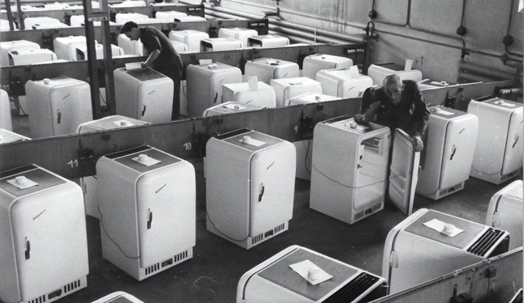 东德有一座叫沙芬施泰因的小城,当地最具代表性的企业就是电冰箱制造厂DKK。 DKK制造的电冰箱,不仅在东欧社会主义阵营国家享有盛誉,产品甚至出口西方。在1990年,DKK依旧保持着极高的生产效率,一个车间一天的生产量为5600台冰箱组建,整个工厂5500人,基本上每25秒出厂一台冰箱。