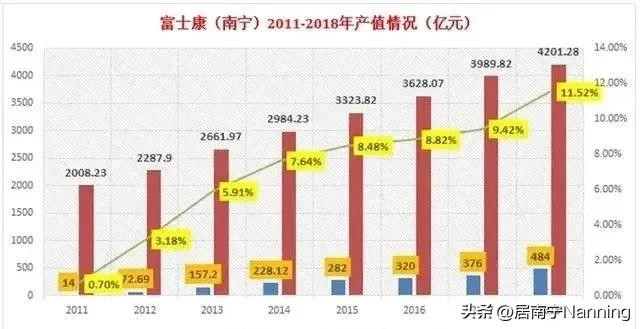 2018年富士康的工业产值占比达到了11.52%。
