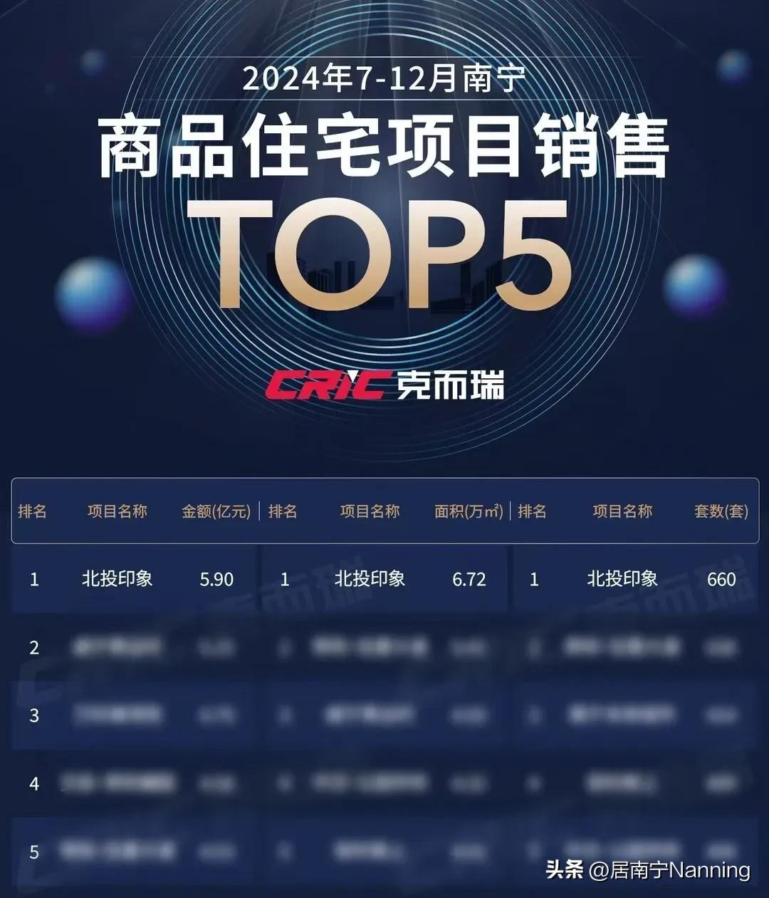 而作为2024下半年才入市销售的项目,即使把商品住宅排行的时间维度放宽到整个下半年,Ta也是面积/套数/金额三方面毫无争议的“销冠”。
