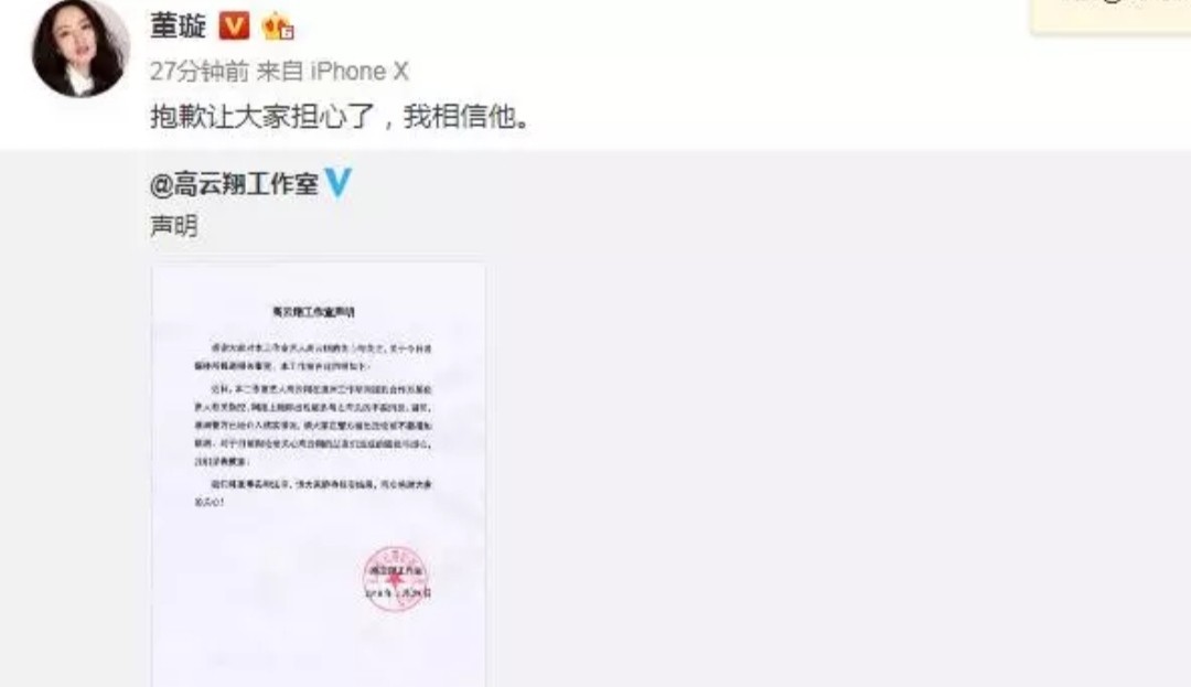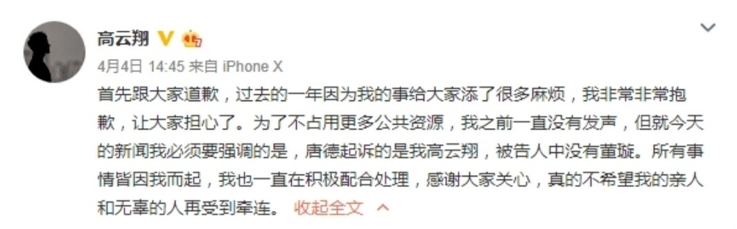 其实,高云翔曾经发文维护妻子董璇的行为还是很男人的,至少做到敢作敢当,如今看来高云翔确实很惨,形象受损,事业受阻,又失去了幸福的家庭,很可怜!