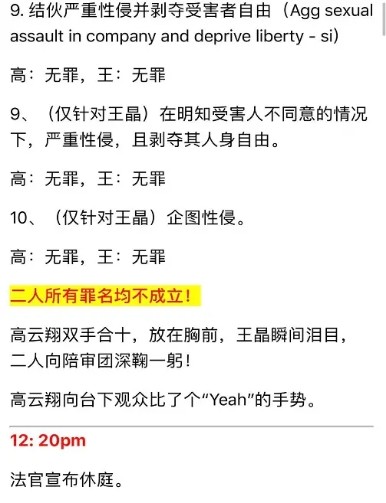 3月19日,媒体报道,法官当庭宣判,高云翔和王晶之前被控告的所有罪名都不成立,两人无罪释放,宣判结果让高云翔终于沉冤得雪,证明自己的清白。