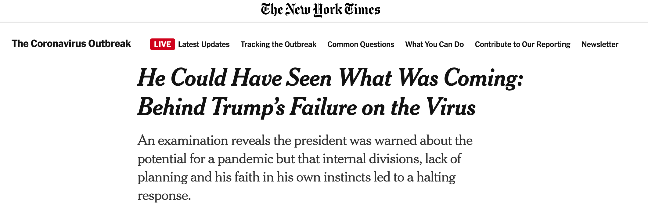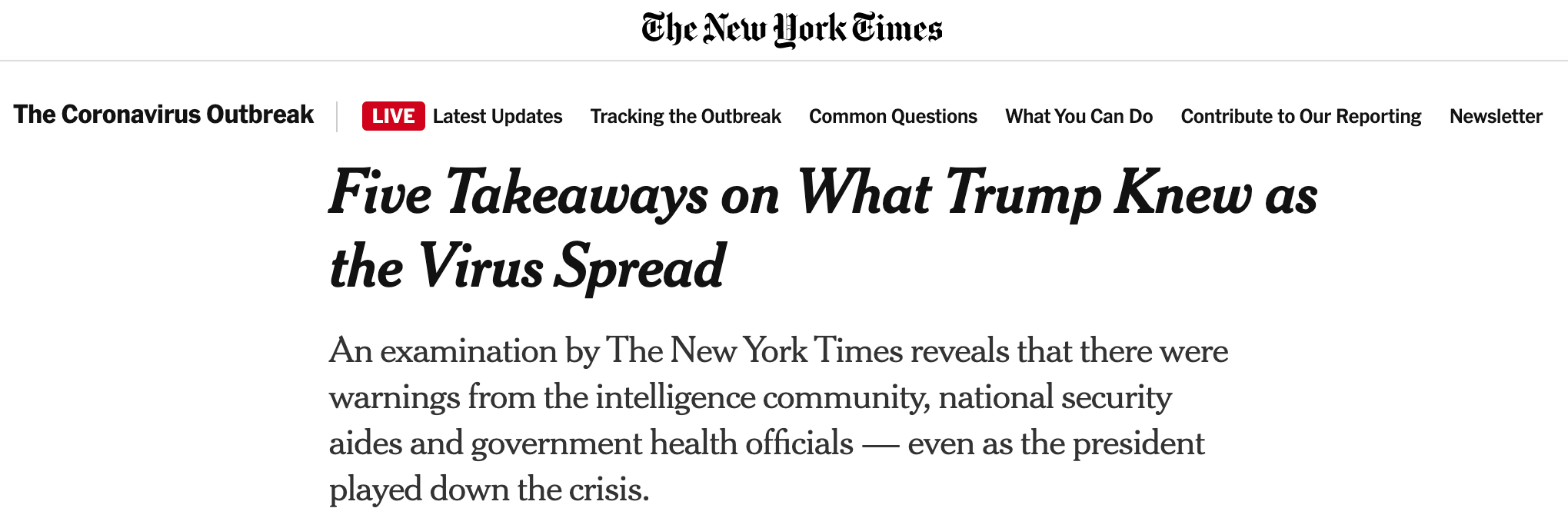这二个月中,还有什么信息被特朗普“蓄意”疏忽了呢?《纽约时报》在另一篇报讲中梳理出一条要害的时间线。