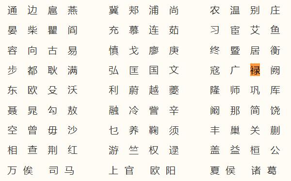 禄氏是一个古老的多源流的姓氏,禄姓起源和来历主要有以上三处,得姓始祖为纣王之子武庾,目前在百家姓中排名第358位,位于广姓之后,阙姓之前。有兴趣的朋友,还可以看看广姓起源和来历,以及阙姓起源和来历。