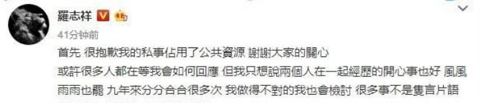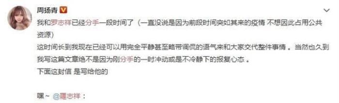 今天,别的瓜我们先不说,重点来说一下罗志祥事件,再来分析一下为什么渣男在婚恋市场上总会如鱼得水。01罗志祥怎么了?今天9点,罗志祥前女友周扬青发了条分手宣言。分手倒没什么,之前已经有不少新闻预热,但是更关键的是里面的内容,周洋洋洒洒写了1200字,逻辑清晰,阅读起来十分流畅····