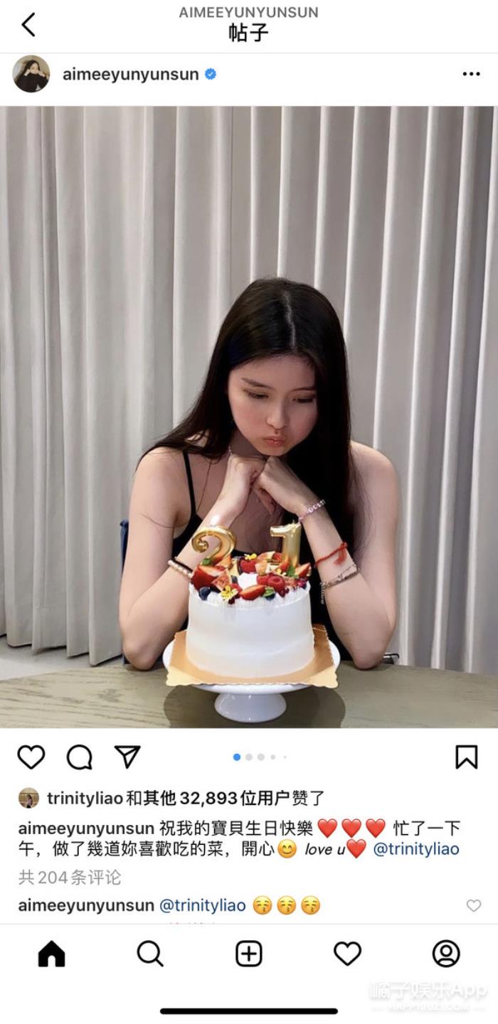 昨天是孙芸芸女儿廖思惟21岁的生日,