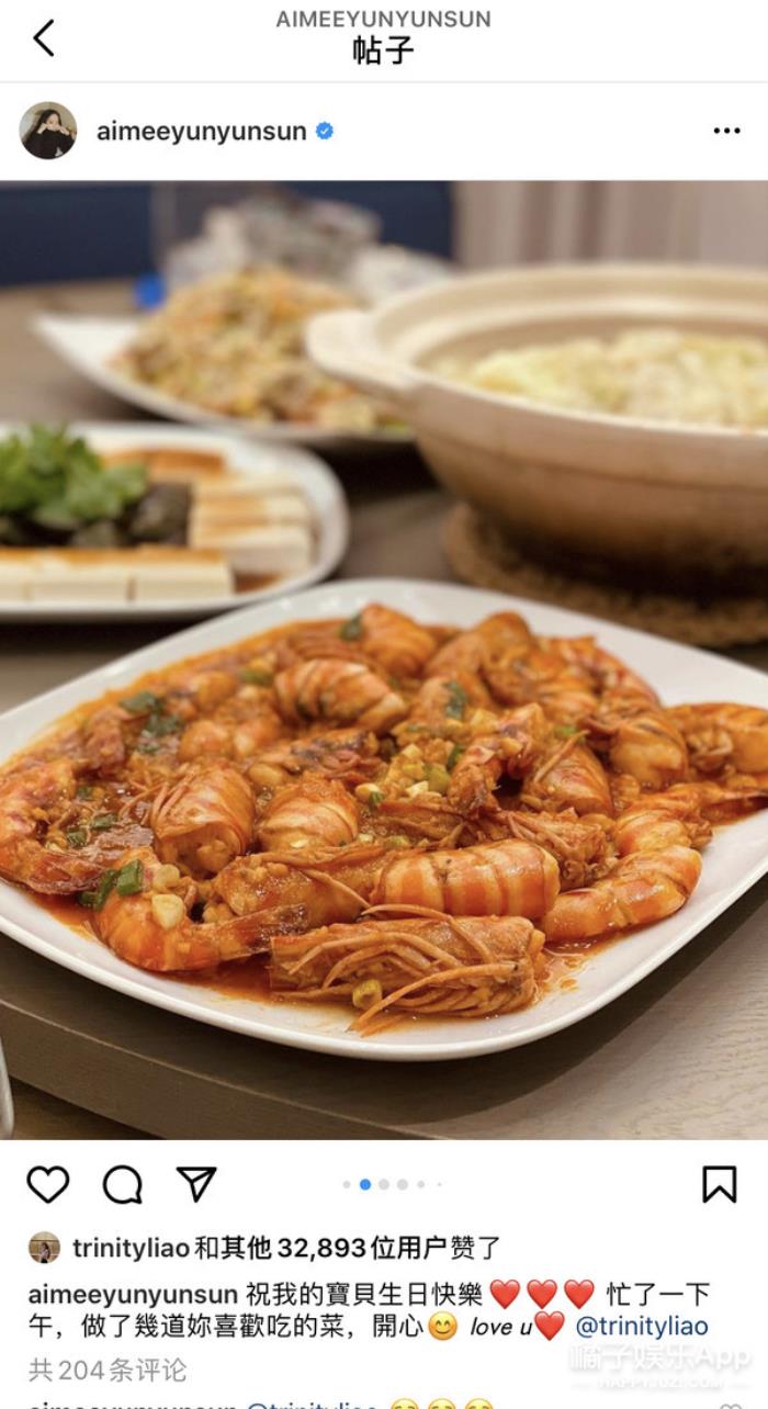 孙芸芸在ig上po了女儿的生日照以及自己为女儿准备的美食⬇️