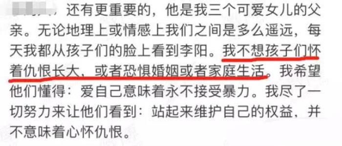 8年前,Kim说要为孩子们树立一个正确的榜样,离开了李阳,8年后,她又说着希望让孩子不要心怀仇恨,回到李阳身边。孩子成了最名正言顺的借口啊。