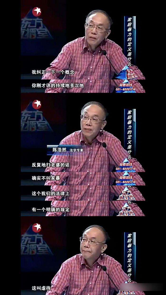 期间还有捧臭脚的,说李阳这不是家暴,家暴应该是:持续的不间断的,甚至是五段的没有任何理由的打老婆、打孩子的。
