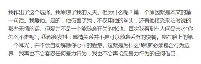 而……就在家暴8年后,在制止暴力侵害妇女行为国际日后的第三天,Kim女士在自己的社交平台上说:我将永远爱我的丈夫……我原谅了我的丈夫……