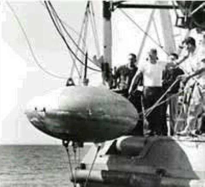 1961年,“CUSSⅠ”号在墨西哥岸外的瓜达卢佩岛附近水深3600米处,首次成功钻井,在170米厚的沉积层下,取得了14米长的玄武岩样品。