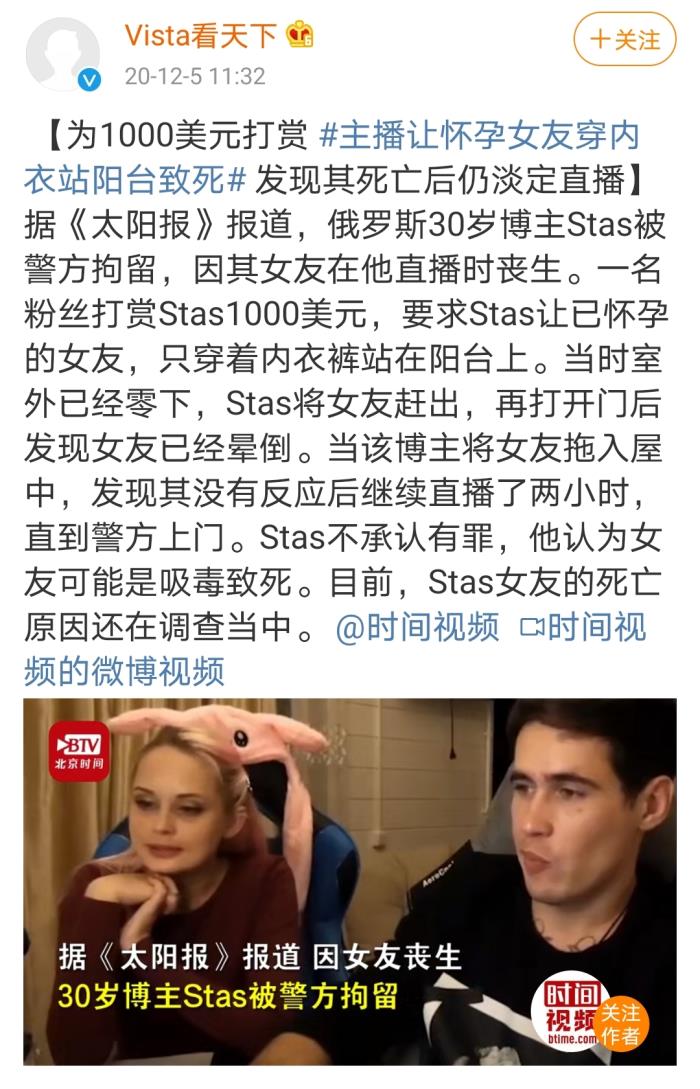 还有为了1000美元的打赏,将自己仅穿内衣的怀孕女友关在阳台致死,而后他依旧淡定地直播了2个多小时。