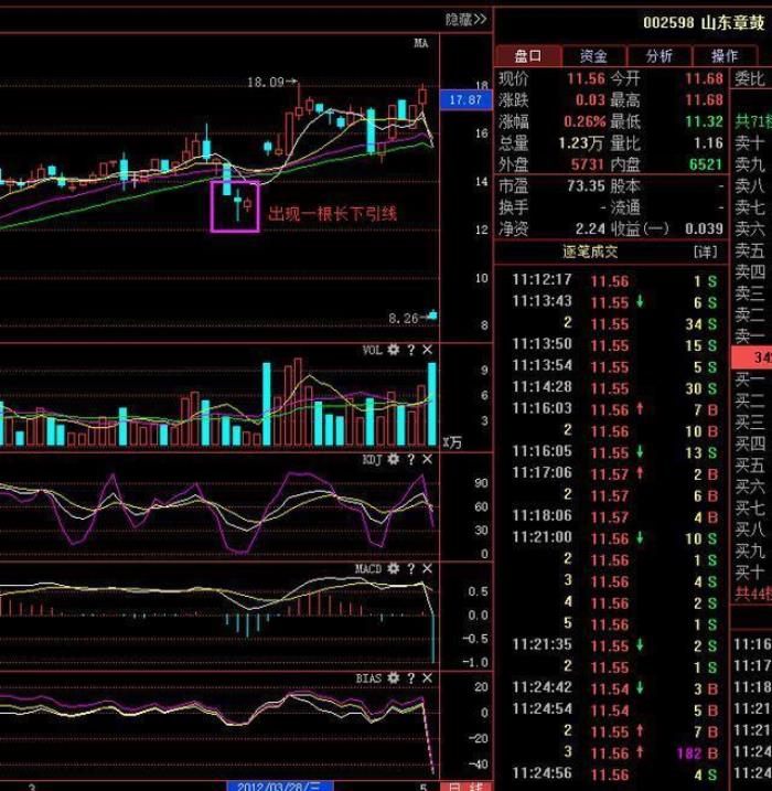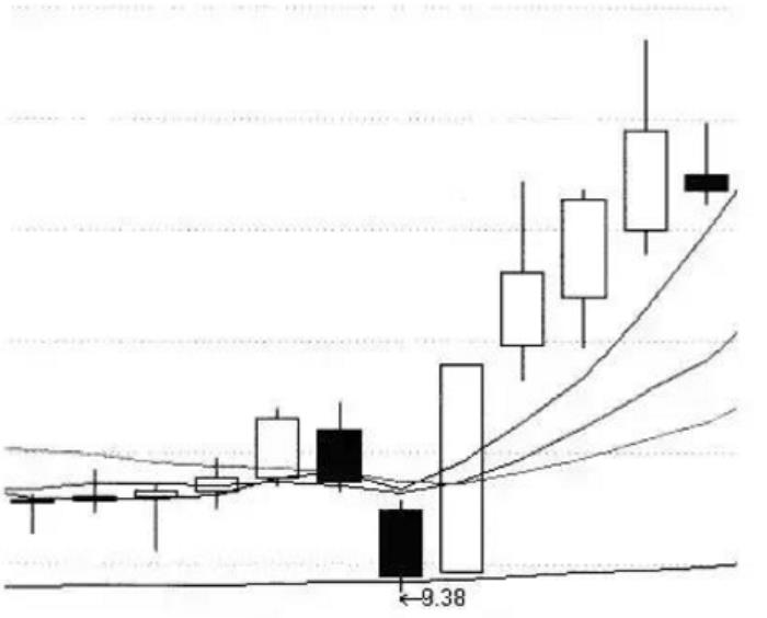 操作要点:股价下跌到了比较重要的支撑位置或者是大盘有企稳迹象,这时候,高位建仓的主力往往采取自救行动,继续强力买入低位筹码,快速拉升。