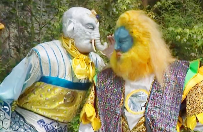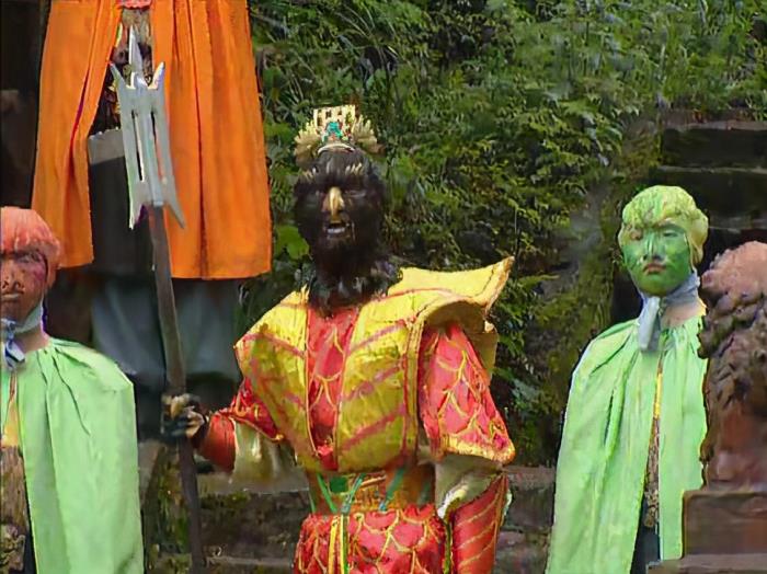 悟空再次来到妖怪的洞门前,大声叫嚣道:“妖怪,快还我师傅!”象怪闻声音赶来后用拿出一个宝瓶向孙悟空问道:“泼猴,我叫你一声你敢答应吗?”孙悟空一听便来气了说道:“有何不敢?”可就在孙悟空答应的时候,被宝瓶给吸进去了。