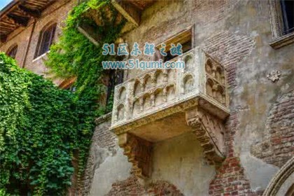 意大利朱丽叶故居,莎士比亚戏剧《罗密欧与朱丽叶》的灵感取材地。如若写信给苦命的恋人,把信贴在朱丽叶阳台下的墙上,她就会帮你实现这个愿望,让你陷入爱河。