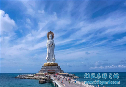 目前世界上最大的一尊金玉佛像——金玉观音坐落在南山寺内,造价1.9亿人民币,是闻名全海南的“镇岛之宝”。尽管南山文化旅游区景点繁多,但壮观的108米海上观音是当之无愧的亮点之一。