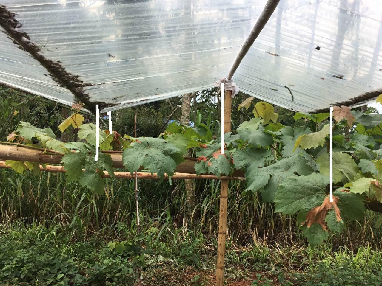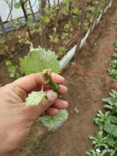 合理枝蔓管理,促使叶片提前老化。留枝不宜过多,过密,及时绑缚。多花前集中摘心之后,果穗周围的叉会长得很快,这是靠近果穗或者果穗以下的叉必须全部抹干净,防治叉上的嫩叶感染霜霉直接上果。