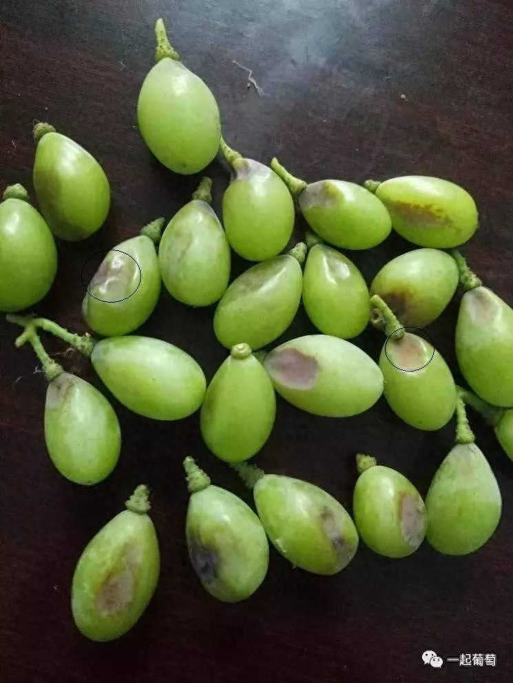 日灼在上部,汽灼在下部,日灼一个点,汽灼半个粒。分清楚也没用,能防住就好。