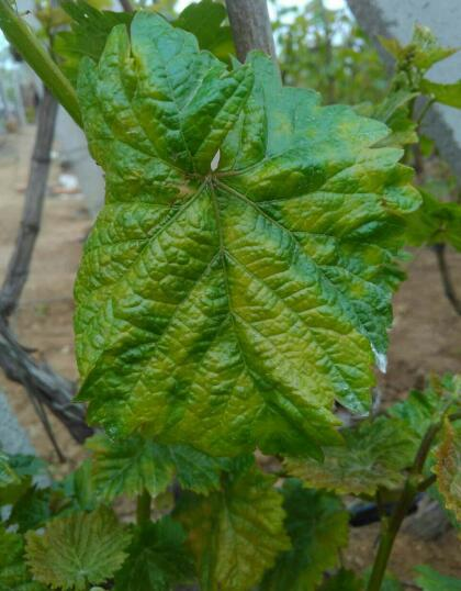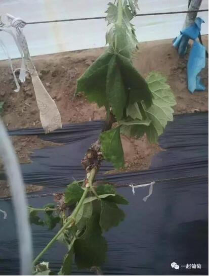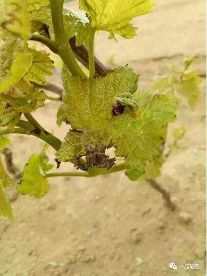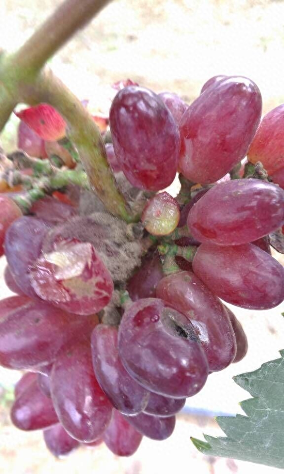 没老化好的中等枝条先感染。慢慢侵染叶片和果穗,叶片上有V字病斑,果穗腐烂。