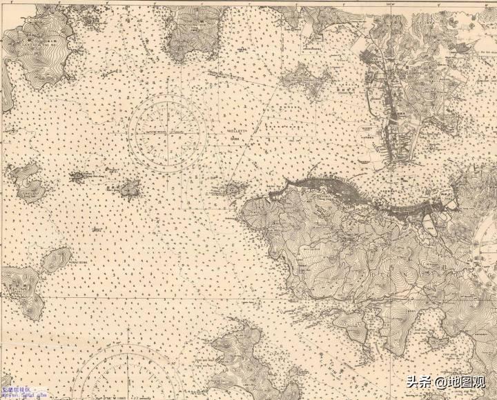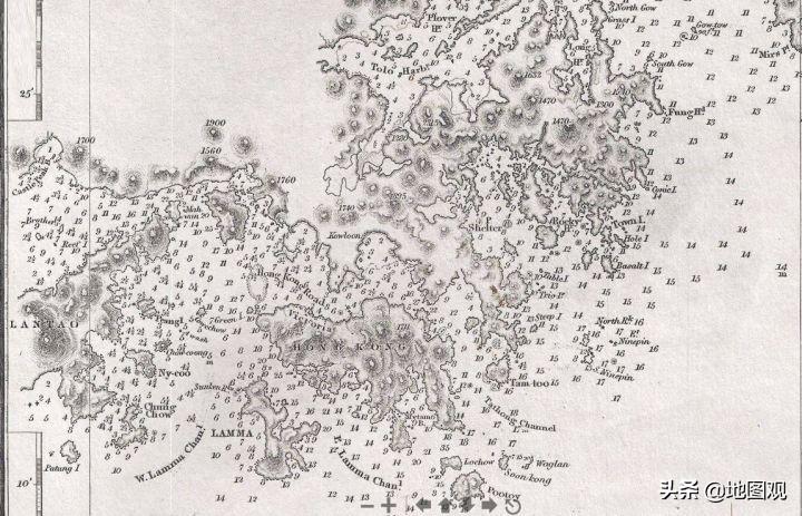 1861年:香港附近海图,海上的数字代表水深,可见当时英国人已大举测量香港航道。