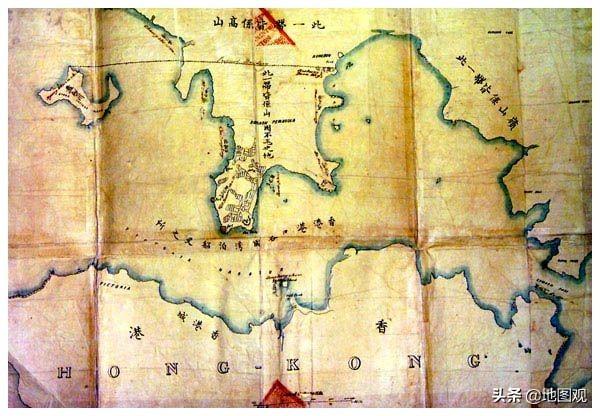 1841年:《南京条约》附图,之後香港割让予英国。