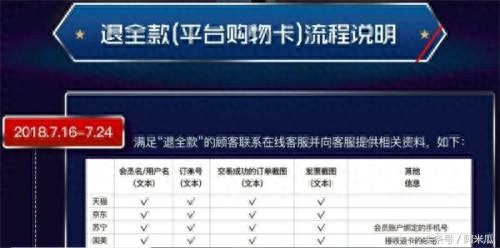 需要注意的是,退款方式并不是现金,而是天猫超市卡、京东E卡、苏宁礼品卡或者美通卡。