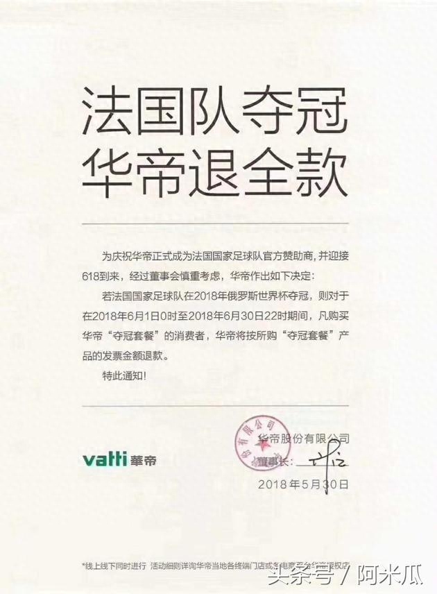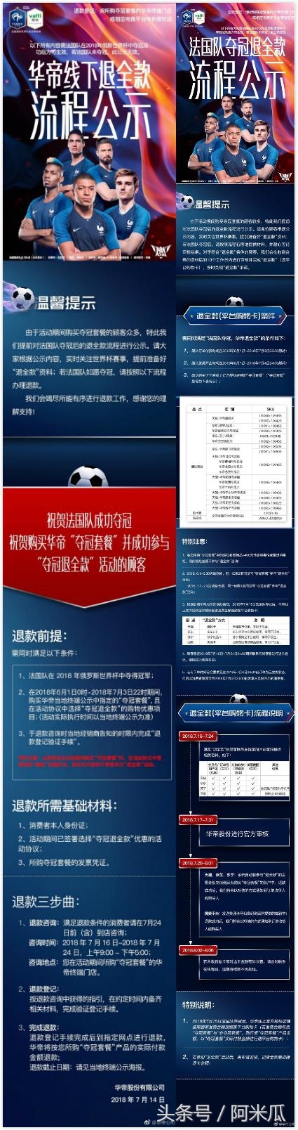 法国队夺冠!华帝公司官方称正式启动退全款流程