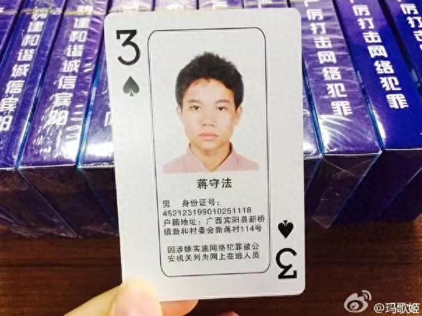 【警察制作“通缉犯扑克牌”免费发给民众!方块6落网】广西宾阳县的公安非常有创意,制作了一副扑克牌免费发送给市民,每张牌上面都印上了通缉犯的照片、名字和犯行,让大家打牌娱乐之余可以顺便记住这些通缉犯的脸帮忙破案。1月13日,接到群众举报,警察一举把“方块6”嫌疑人拿下。