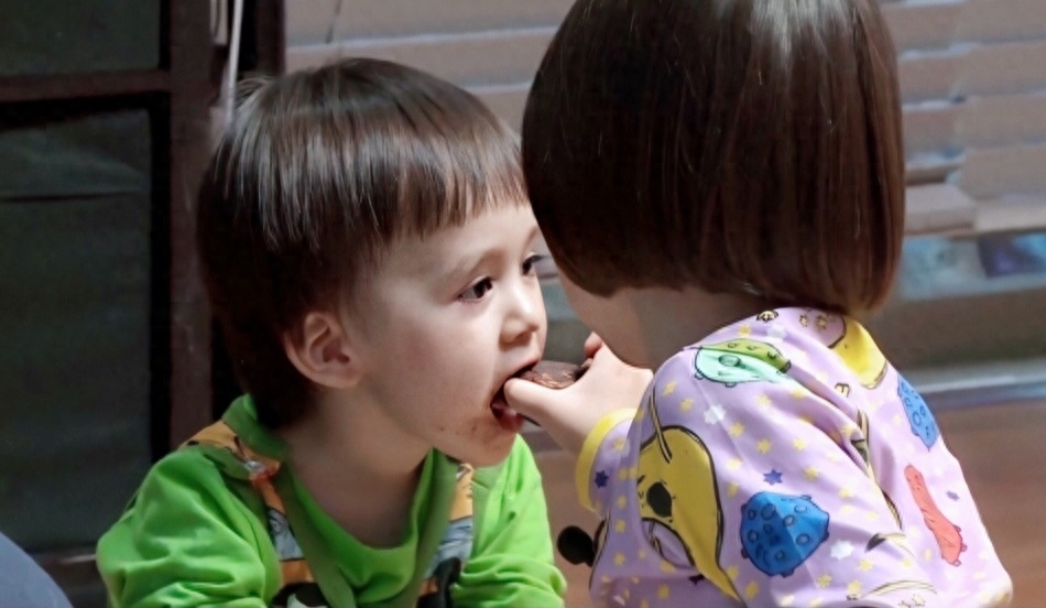 小威心疼弟弟,大义凛然地掀起衣服,像妈妈喂奶一样,为本贡献出自己挤不出奶的乳房,真是大公无私啊!被他两整懵了我都,还有这样的操作吗哈哈?