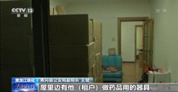 青冈县公安局副局长 王斌:第一个出租屋我们发现,他经常从这个出租屋往外搬货往外发货,第二个出租屋里边有他做药品用的器具,我们断定第二个屋就是加工点。